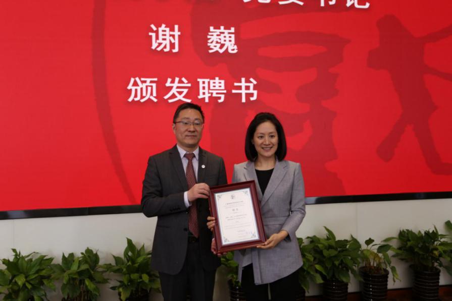 图为全讯600cc大白菜官网党委书记谢巍为PT计划专家颁发聘书