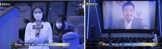 直播中,来自武汉、北京、上海、天津、重庆、广州、杭州等全国50个城市的观众分享了自己的观影感受;黄晓明、朱一龙、郭帆、唐季礼、乔杉、郭晓东、田羽生、屈菁菁等电影人也实时连线,交流心声,致敬英雄,传递温暖。