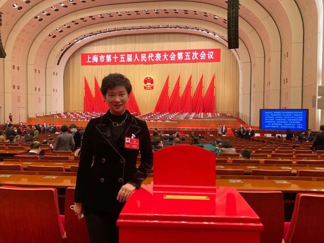 图为董健老师在上海市第十五届人民代表大会第五次会议上留影