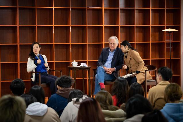 讲座的前半部分,在本期讲座的主持扬·舒特(Jan Schütte)教授与编剧李威的对话中展开,舒特教授首先询问了李威老师是如何走上编剧道路的,以及是如何与张艺谋导演展开合作,如何将《影》从一个宏大的史诗性叙事故事改编成一个关于替身与自我的个人化剧本的。李威老师认为之前从事的有关于纪录片的创作是实打实的,但是虚构的剧中世界更让她着迷,这种颇为“水中月,镜中花”的创作过程更让她享受。在《影》的改编中,编剧的工作就像玩黄金矿工的游戏,在探索的过程中即会有惊喜也会碰上石头。当面临原有逻辑出现问题的时候,她会先按原计划写出来,同时做一个编剧笔记,记录下出现的问题和随时迸发的闪光点。
