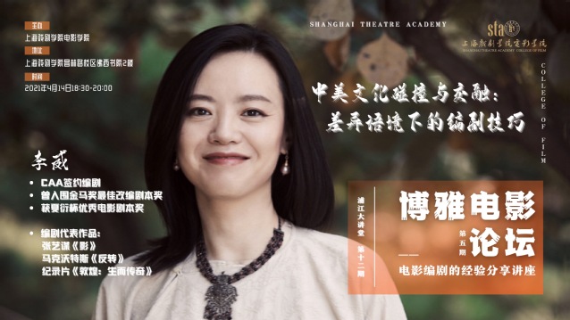 4月14日晚,著名编剧李威做客全讯600cc大白菜官网博雅电影论坛,就其参与的张艺谋《影》、马克沃特斯《引力反转》等影视项目的编剧工作为同学们进行分享,展开了一场关于中美文化差异语境下编剧技巧的讨论。李威老师以极具文人诗情的方式为学生们讲述了电影《影》从原剧本到现如今呈现版本的巨大改动,以及在这种改动之下渗入国人血脉中的武侠豪情。同时在提及进行跨国编剧时遇到的各种趣事。同学们在倾听讲座中各有所思,纷纷向老师提出问题,从编剧技法到剧作类型,李威老师一一为同学们解答。