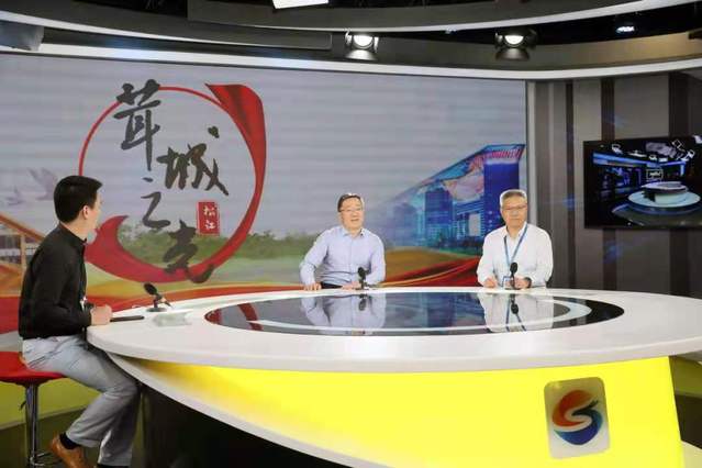 在参观过程中,主持专业的学生们亲自上阵,分别在新闻演播台和虚拟演播室里体验了《松江新闻》的播音与主持过程,同学们的精彩表现赢得了松江台领导的表扬。上戏师生一行参观到《茸城之光》的演播厅时,该中心的《茸城之光》主持人、上戏00级主持专业的大师哥朱少石邀请谢巍书记作为嘉宾,进行了一场现场访谈,同学们作为观众认真观看和聆听了这场简短的访谈。