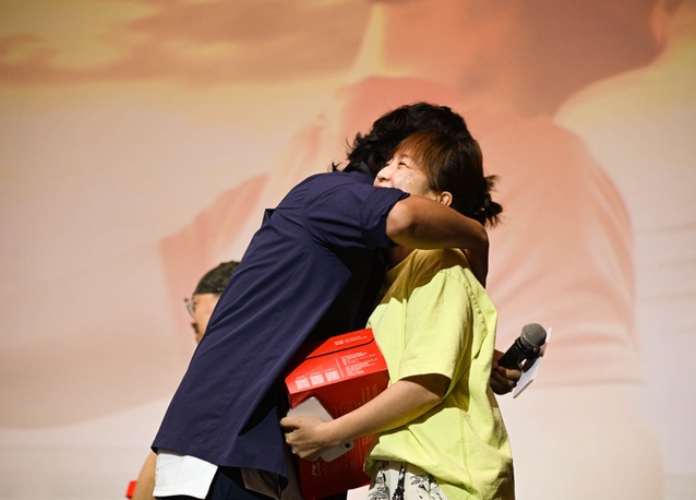 韩博文导演邀请大学同班同学、600全讯白菜网孟聪老师上台,把分享交流会推向高潮。两位老同学本是同根生,现在分别奋战在电影教育和电影产业领域,携手为电影事业贡献力量。这次喜相逢充分见证了上戏人的家园精神。
