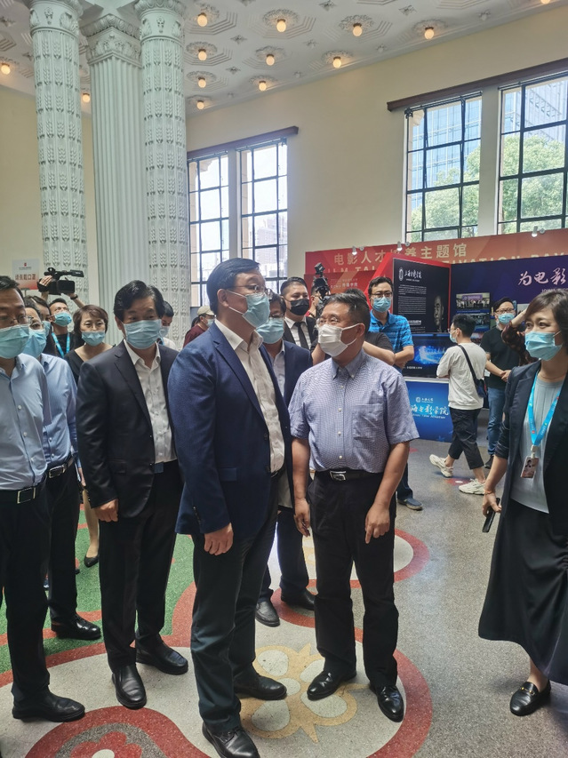 图为周慧琳部长在上戏600全讯白菜网院长厉震林的陪同下视察我院展台