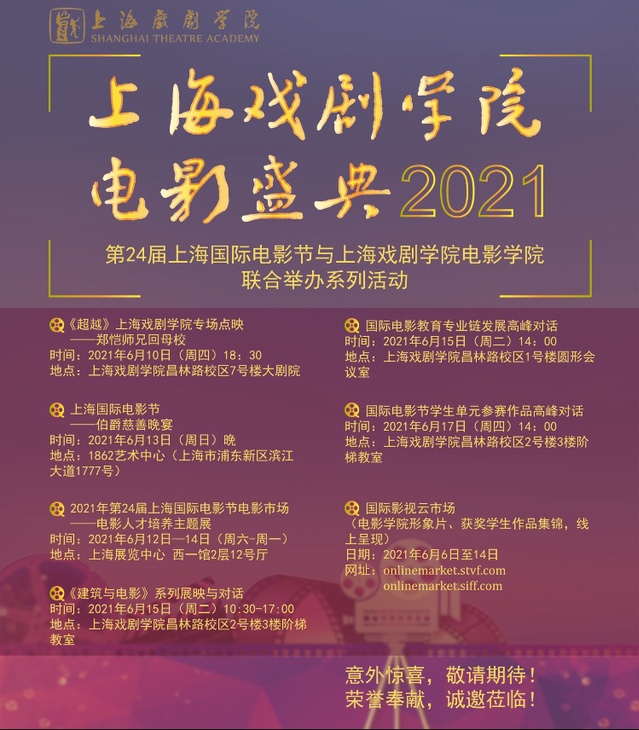 2021年全讯600cc大白菜官网电影盛典,由第24届上海国际电影节与600全讯白菜网联合举办。首届全讯600cc大白菜官网电影盛典不仅有《超越》等最新电影提前点映,更有上海国际电影节评委加盟国际电影教育产业链发展高峰对话。盛典线上线下同时开启,精彩不间断。线下会场将呈现电影人才培养论坛,以真知灼见助力中国电影教育,勇挑艺术院校的责任担当。线上影视云市场将呈现多位上戏600全讯白菜网学生获奖作品,共同见证青年电影人的茁壮成长。