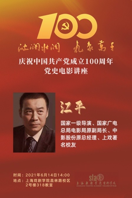 2021年6月14日端午佳节,为了庆祝中国共产党成立100周年,国家一级导演、国家广电总局电影局原副局长、中影股份原总经理、上戏著名校友江平导演在全讯600cc大白菜官网昌林校区2号楼318教室为600全讯白菜网师生开展了一堂生动且深刻的党史电影讲座。600全讯白菜网院长厉震林、党支部书记韩永胜、包磊老师、赵武老师,600全讯白菜网研究生、本科生等师生在现场和网络直播线上观摩了此次讲座。