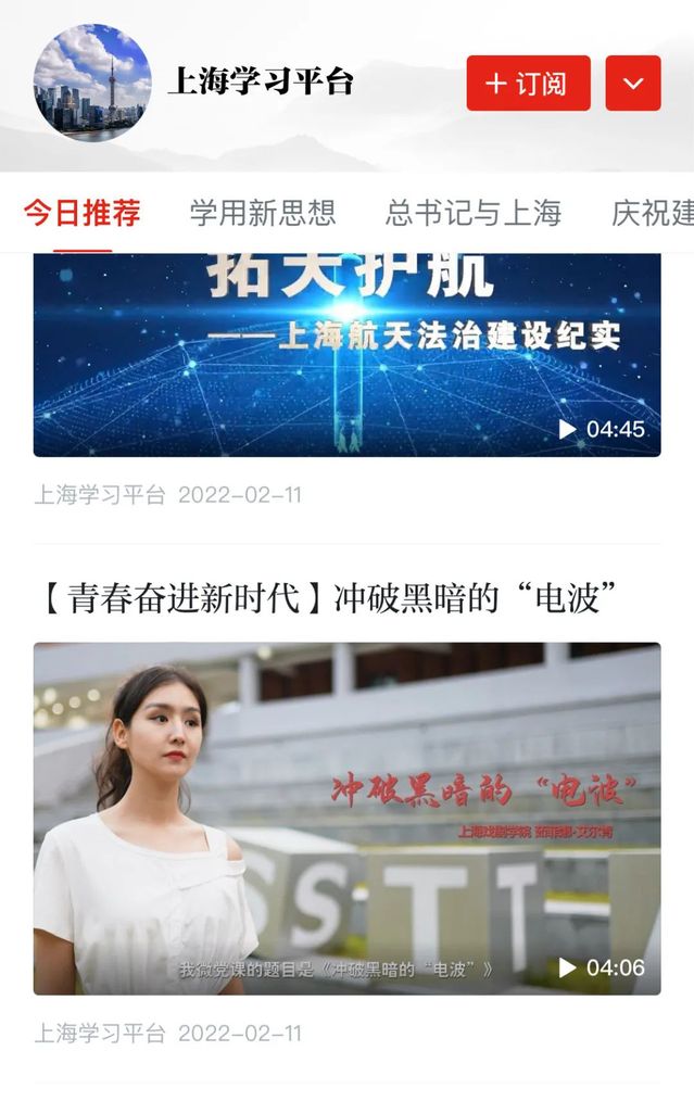 近日,我院20级广播电视编导学生茹菲娜·艾尔肯的微党课课题《冲破黑暗的“电波”》登陆学习强国平台“青春奋进新时代”系列视频板块展播展示,该系列视频为复旦大学和上海教育系统网络文化发展研究中心联合主办“百年峥嵘路 青年心向党”第四届上海市高校学生理论宣讲微课程比赛的成果展示,该项比赛于2021年9月启动,历时四个月的激烈角逐,近期落下帷幕,来自上海市的30多所高校参加的角逐,经过层层筛选,我院20级广播电视编导专业学生茹菲娜·艾尔肯的微党课课题《冲破黑暗的“电波”》榜上有名。