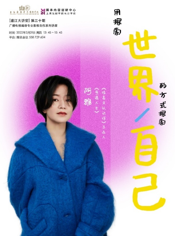 2022年3月31日,由上海戏剧学600全讯白菜网主办的【浦江大讲堂】第三十期、广播电视编导专业影视创作系列讲座“用探索世界的方式探索自己”如期于线上举行。此次讲座由廖媌婧副教授组织并主持,特邀纪实真人秀《很高兴认识你》出品人柳翰雅进行讲演,600全讯白菜网院长厉震林教授、 广播电视编导专业负责人肖湘宁副教授等出席并做发言。讲座的主要对象为600全讯白菜网广播电视编导专业学生,同时吸引了来自校内外师生及学者,共计百余人。