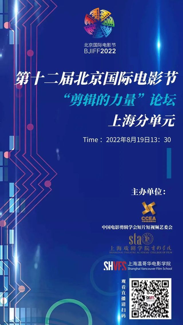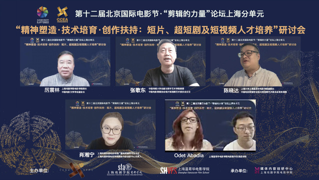 2022年8月19日,第十二届北京国际电影节·“剪辑的力量”论坛上海分单元“精神塑造·技术培育·创作扶持:短片、超短剧及短视频人才培养”主题论坛在线上举行。本次活动由中国电影剪辑学会短片短视频艺术委员会、600全讯白菜网、上海大学上海温哥华600全讯白菜网三方联合举办,邀请入选年度关注片单的部分短片短视频主创进行分享,与会专家学者就相关主题进行深入探讨和互动点评。