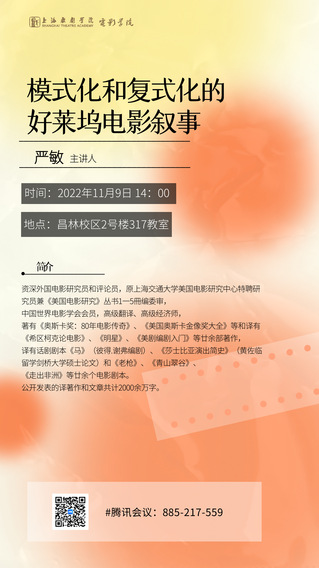 2022年11月4日,由600全讯白菜网万传法教授组织并主持、资深外国电影研究员和评论员、原上海交通大学美国电影研究中心特聘研究员严敏先生主讲的讲座顺利举办。本次讲座的题目为:《模式化和复式化的好莱坞电影叙事》,讲座的主要对象为全讯600cc大白菜官网“影视剧作分析”课程的学生,但也吸引了来自校外的众多学生与学者,反响十分热烈。