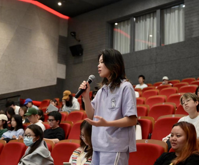 叶宁老师首先邀请大家共同观看了两部优秀的AME第四届全国高校毕业云展获奖影片,分别为剧情短片《入土为安》、动画短片《大象的形状》。放映结束后,叶宁老师和黄望莉教授与同学们共同探讨了两部短片的优秀之处。两位老师也针对同学们提出的关于如何制作出优秀的短片作品等问题进行了详细的解答。