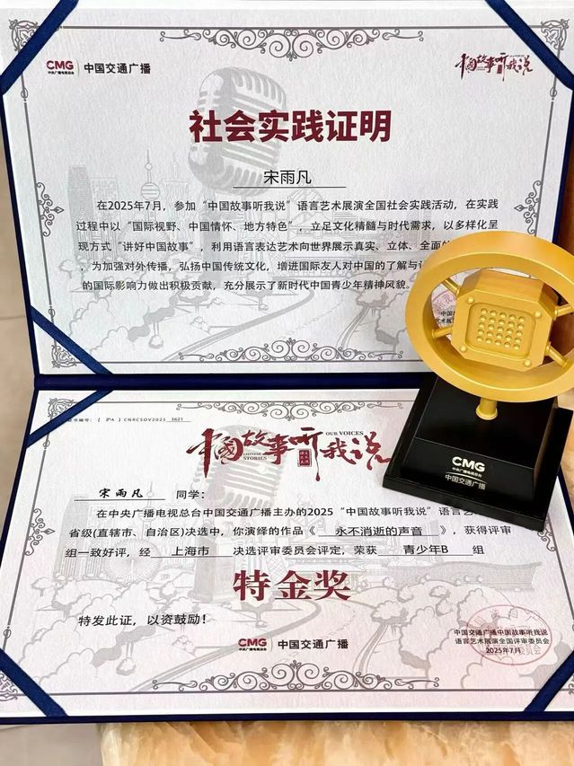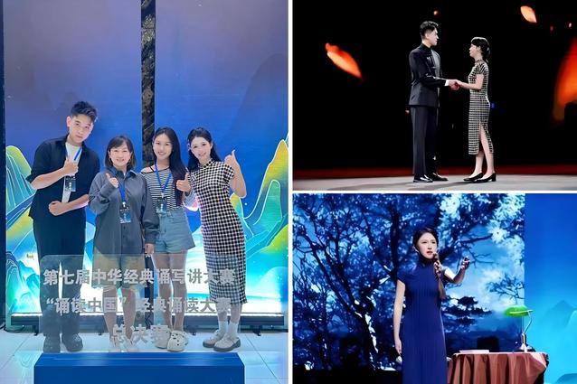 在语言艺术与专业赛事中,同学们斩获多项高层次荣誉。24级张静怡、信博文、言姝瑾在教师指导下参加第七届中华经典诵写讲大赛“诵读中国”全国总决赛,张静怡、信博文以作品《对话·红色追思》取得线下分数第3名。23级聂心灵、李雨璠《与妻书》获第三届“国话杯”剧本朗读大赛金奖。23级宋雨凡获中央广播电视总台“中国故事听我说”语言艺术展演特金奖。23级刘卓、李瑞思涵、聂心灵《七子之歌》,22级肖倬睿、郭书豪《两千年前的闪击》,23级张之一、侯思明《黎明的赞歌》获得港澳和内地高校大学生中华经典诵读交流展演优秀作品奖。