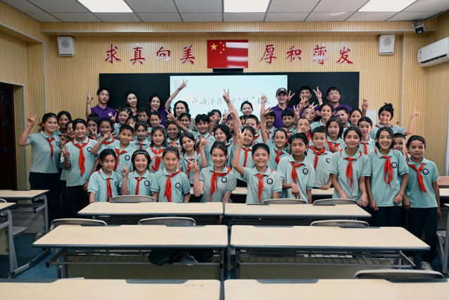 推广国家通用语言文字,是为各民族群众打开教育大门、提升综合能力的关键钥匙。上戏“声”耕推普实践团紧扣当地教育需求,将推普工作与教育帮扶深度结合,足迹遍布第三师中心幼儿园、四十四团二中、五十三团第二中学等11所学校,覆盖幼儿园至高中全学段,用精准服务填补语言提升空间。