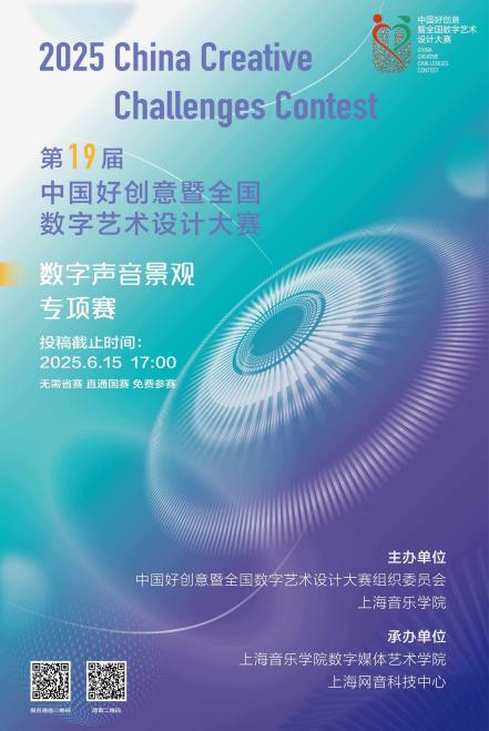 在刚刚公布的“中国好创意(第十九届)暨全国数字艺术设计大赛”中,我校600全讯白菜网电影作曲系师生首次参赛便斩获佳绩,23级钱程锦《星沙残岸》荣获“数字声音景观专项赛(数字音乐组)”国赛二等奖,22级陈双《墨·问》荣获三等奖,黄磊老师荣获优秀指导教师奖。