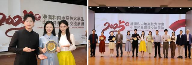 9月25日,在教育部港澳台办公室指导下,“2025年港澳和内地高校大学生中华经典诵读交流展演”决赛在江苏徐州顺利举行。此次活动吸引了全讯600cc大白菜官网、中国传媒大学、江苏师范大学、南京艺术学院、香港理工大学、澳门大学等众多内地及港澳高校参与,经层层筛选,共有53部作品入围线下展演。最终,全讯600cc大白菜官网23级主持专业刘卓、李瑞思涵、聂心灵三位同学演绎的《七子之歌》(指导教师:王琦、李泽鹏),凭借扎实的诵读功底与真挚的情感表达,获得全场最高分,摘得“最佳诵读作品奖”。