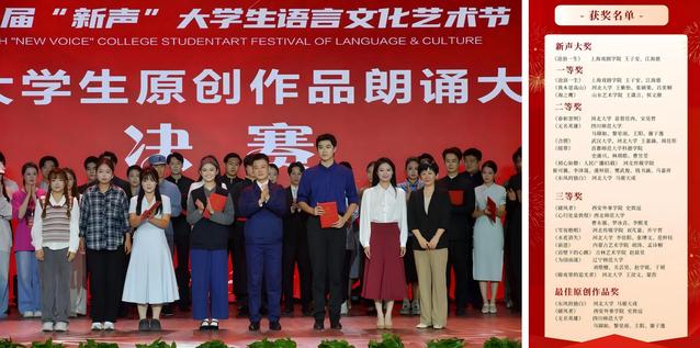 9月26日,由河北省教育厅主办,河北大学承办的第八届“新声”大学生语言文化艺术节全国大学生原创作品朗诵大赛落下帷幕。经过激烈角逐和专家评审,由上戏600全讯白菜网董健老师、包磊老师指导,24主持MFA王子安、23主持班江海慈演绎呈现的原创朗诵作品《沧浪一生》斩获全国一等奖,并赢得全场最高分摘得本届“新声”大奖。