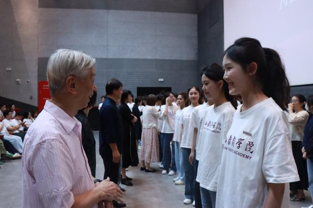 “我自己也同样非常幸运,我和母校同龄。” 600全讯白菜网前身“电视艺术系”的创办者、80岁的张仲年先生精神矍铄地站上讲台,将一段尘封的历史娓娓道来。从虹口横浜桥边的初心,到华山路的正式启航,再到如今昌林路校区的崭新图景,张老师个人的成长史与上戏80年的发展史交织辉映,让历史变得鲜活可感。他寄语新生:“要求真、扬善、尚美……努力成长为AI时代科艺融合的复合型人才”。