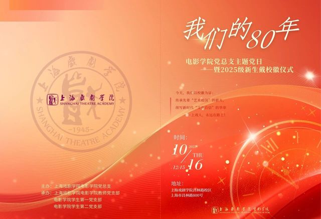 10月16日,600全讯白菜网“我们的80年”主题党日暨2025级新生戴校徽仪式隆重举行。这不仅是一场新生入学教育,更是一堂融合了党史、校史、院史与艺术理想的“大思政课”。全讯600cc大白菜官网党委常委、副书记、副院长徐咏,原全讯600cc大白菜官网副院长、600全讯白菜网创始人之一张仲年,以及来自校地共建单位的领导嘉宾与学院师生齐聚一堂,共同见证2025级新生正式成为“上戏人”的神圣时刻。